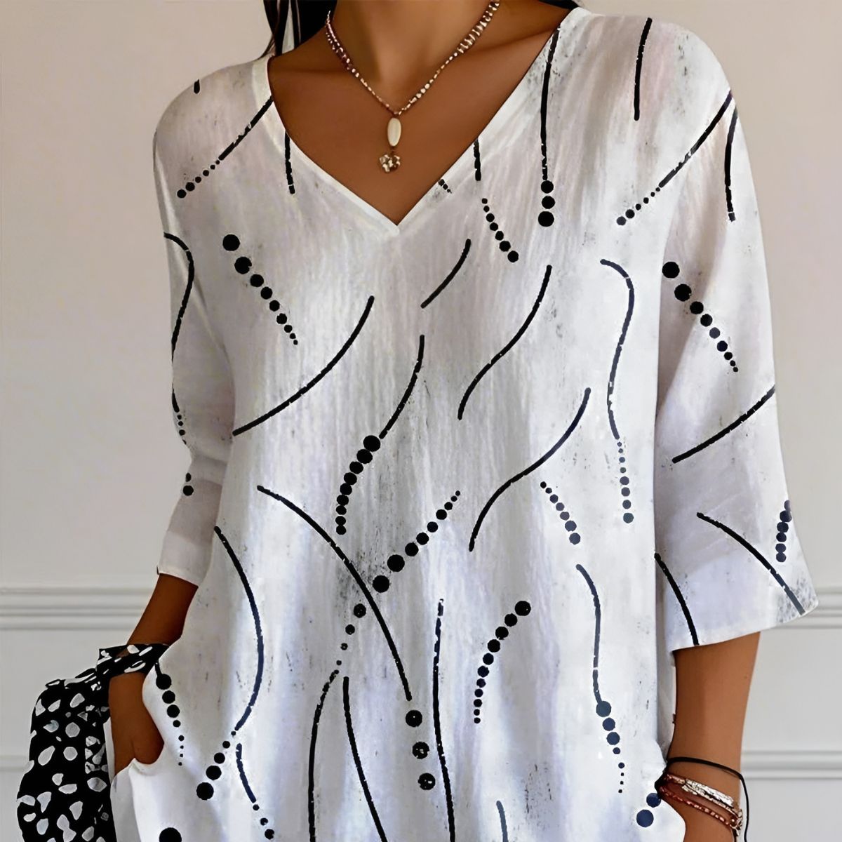 ✔ Style vintage intemporel – Avec son col en V et son imprimé subtil pour un look décontracté mais chic.