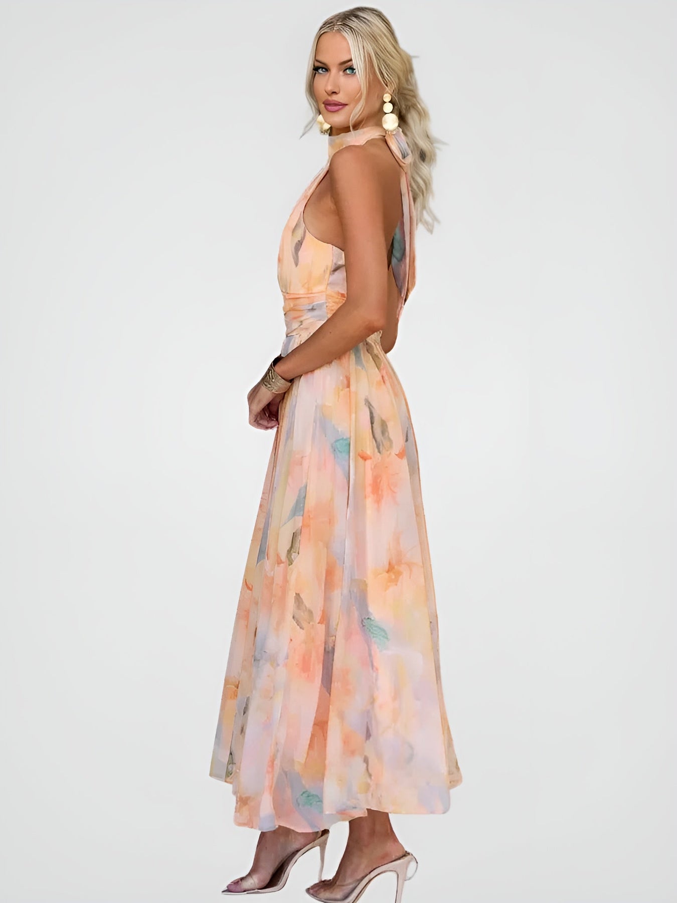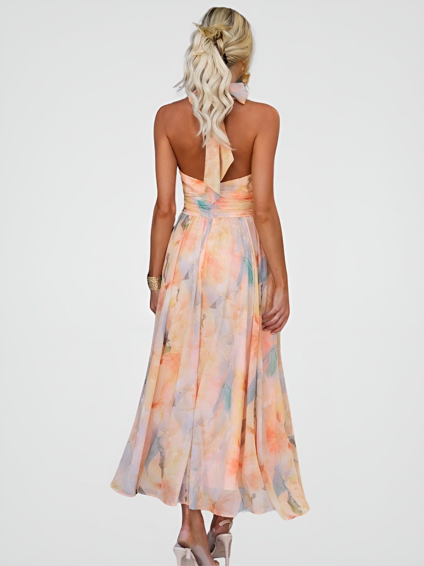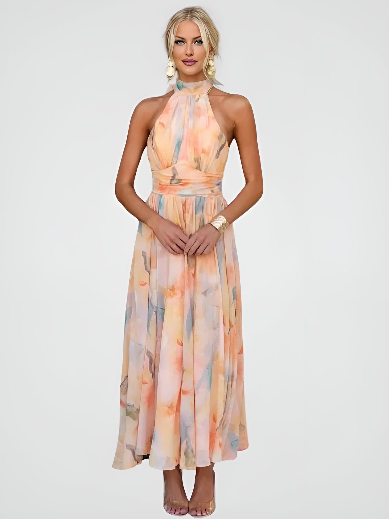 ✔ Coupe flatteuse – Le col halter met en valeur les épaules, tandis que la taille cintrée et la jupe fluide subliment ta silhouette.