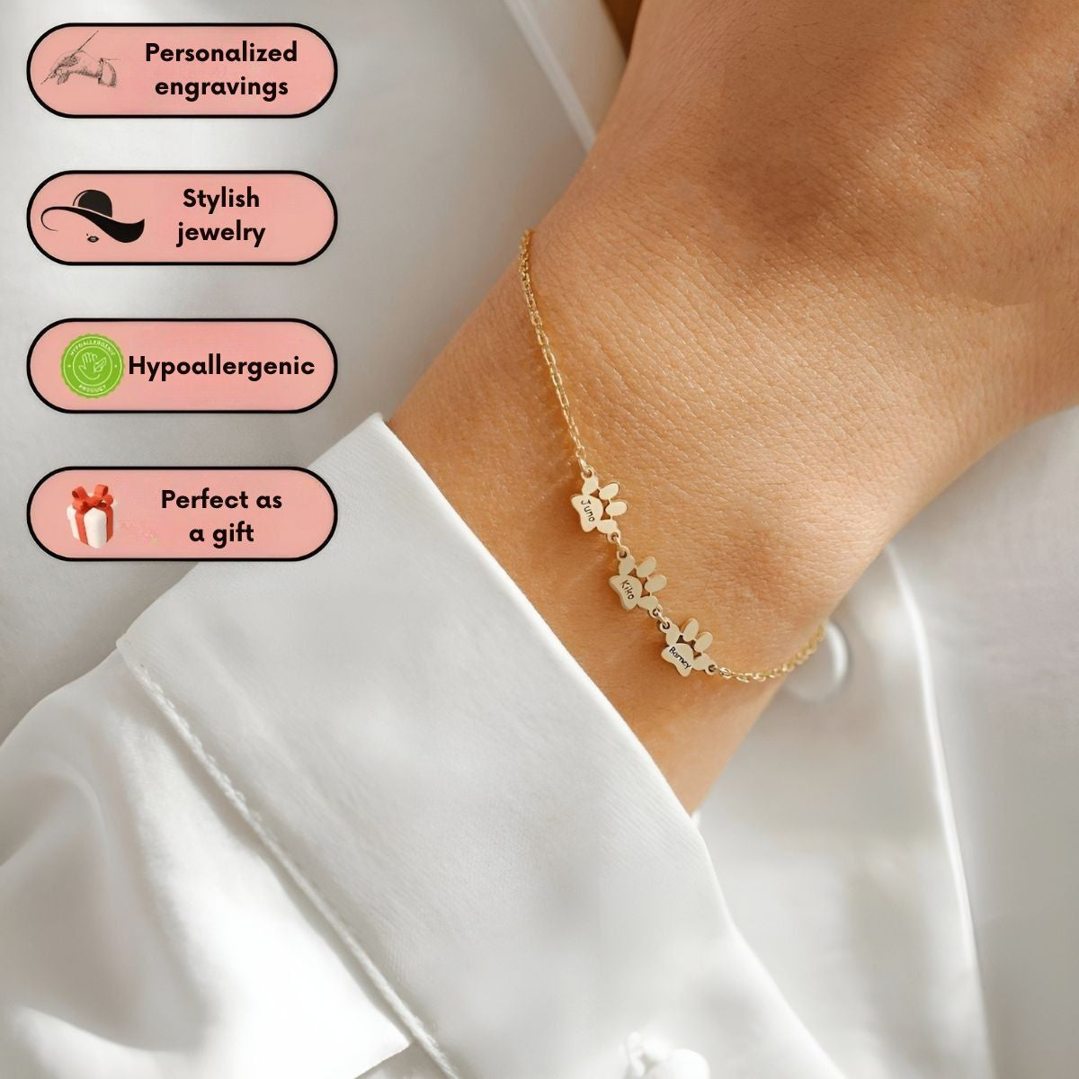 This bracelet is more than just a piece of jewelry — it’s a heartfelt tribute to the pets who leave a mark on your life. The Pawvera™ | Engraved Paw Personalized Bracelet lets you engrave up to 8 names, dates, or words, so you can carry their presence with you wherever you go. Subtle, elegant, and full of meaning, it’s the perfect way to honor your furry companions, past or present, with love.